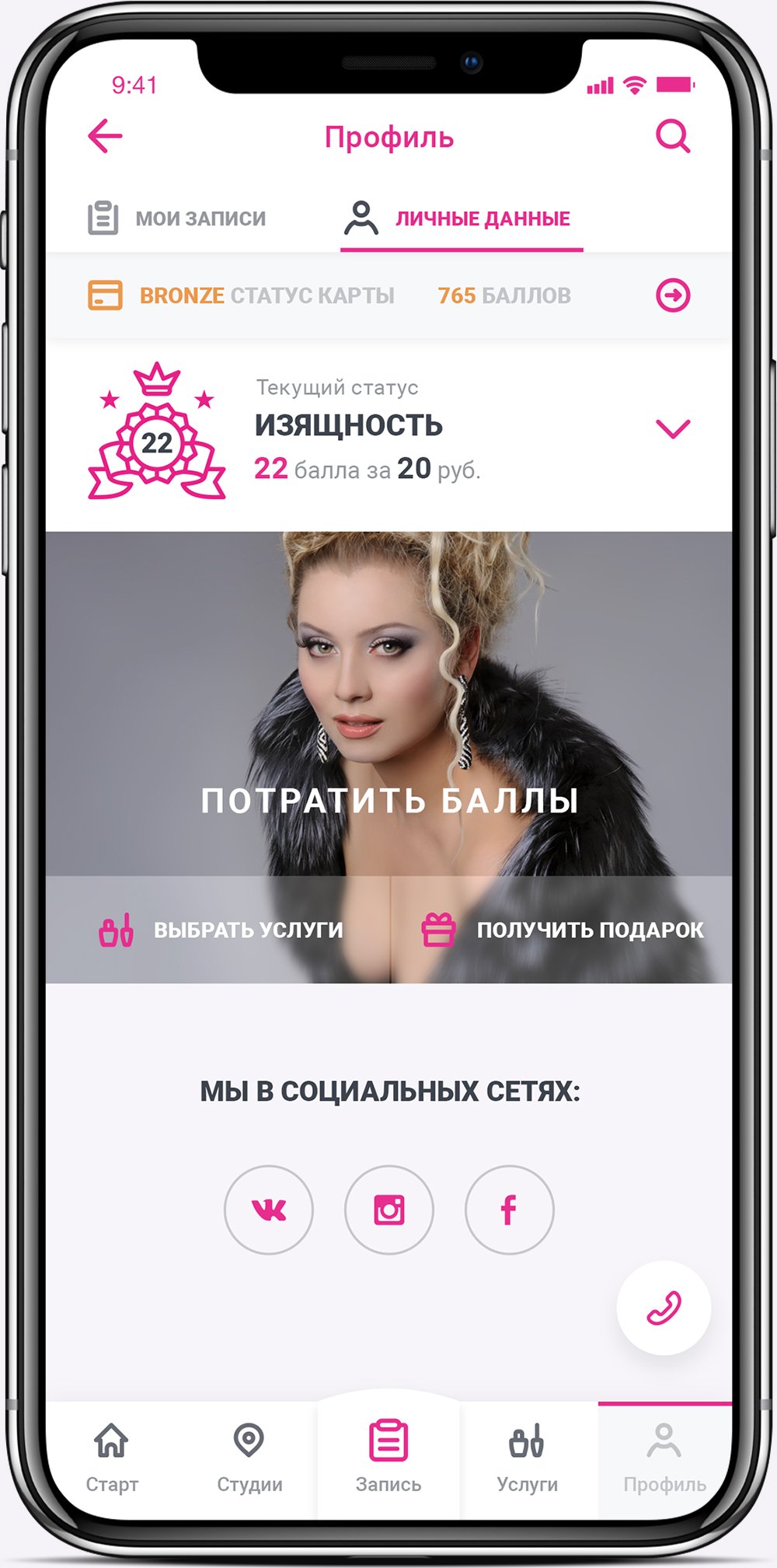 В личном кабинете реализована возможность управлять заказанными услугами, статусом пользователя и осуществлять контроль за собственной бонусной системой.